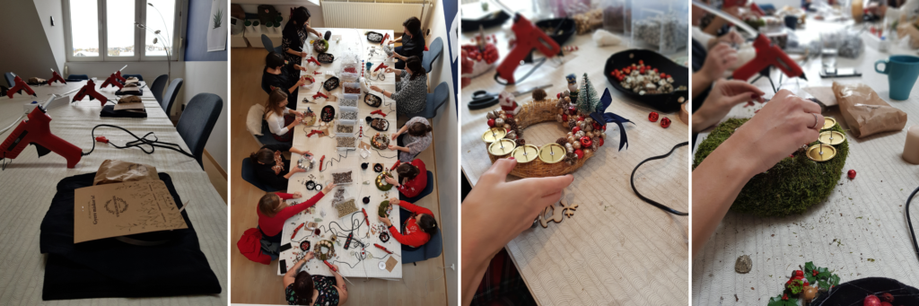 A Virágbuborékműhely workshopjain mindig garantált az aktuális szezonra történő hangolódás! Ezen a délelőttön a téli ünnepekre készülhettek, és válaszhattok, hogy kopogtatót, vagy adventi koszorút készítetek-e. Többféle karácsonyi figura és szín közül válogathattok.